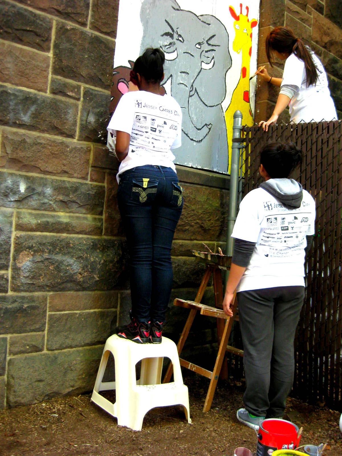 These volunteers are so focused on their murals that everything else is irrelephant!